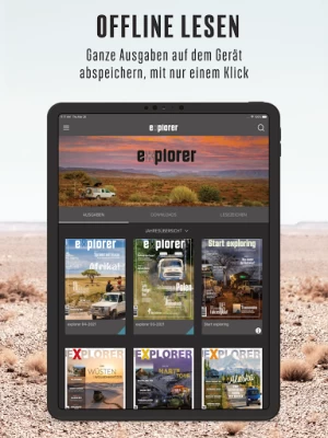 ON TOUR. Sich als Entdecker fühlen, entlegene Reiseziele auf der ganzen Welt mit dem eigenen Fahrzeug erkunden. Abenteuer erleben. Nie war der Traum von der großen Tour so populär wie heute – und gleichzeitig so einfach zu verwirklichen. EXPLORER ist das führende Magazin für diese Zielgruppe, vermittelt Wissen und weckt Reiselust.