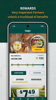 4 out of 5 stars! The only reason I didn't give 5 stars is because the app sometimes load super slowly, which is a huge inconvenience when you're trying do you didn't at the register inside the restaurant! Other than that, the app works great, has an easy-to-use interface, and overall super enjoyable. I really like the new update which allows you to scan or enter your barcode to earn points a little bit faster towards discounts and free food! Thank you Farmer Boys team!