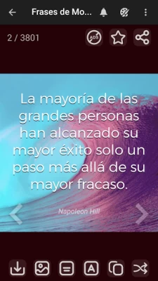 Frases de Motivación es tu app para darte ánimo e inspiración, con ella tendrás un día positivo y verás las cosas desde una perspectiva positiva. Pensarás en el éxito y camino hacia tu felicidad.