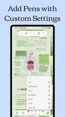 This is a very well made app for handwritten notes. The settings system takes some getting used to but it is very feature rich. Having an option to rotate the page on the fly would be a very welcome addition though.