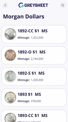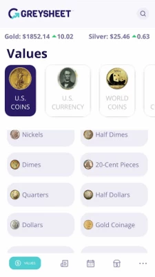 Doesn't work. I use greysheet online and it's fine. This app, on my Android phone, says "nothing registered in the data base for this criteria" or something like that. I can easily find the same coins on the website with no issues. I got tired of trying to get it to work. All of the usual troubleshooting does no good. It was worth a shot, but it is a hard pass. The team designing this app needs to really put in some work and figure this thing out. Disappointing.