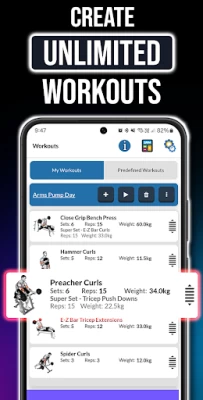 Great for making your own workout plans with no limit on time or the amount of different lists. Other apps may limit you. Only issue is it doesn't make progress suggestions or adjustments, so you do have to track this yourself. Granted, you can update weight/rep amounts that get saved and updated, but YOU have to make those changes. Would love to see an automated progress systems, to be fair, that may be in the paid system.