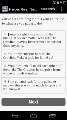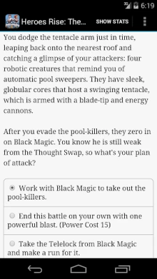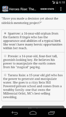 "Hero or villian" did a better job at making you feel like a hero or villian. I can tell the author had a fun story thwy wanted to write, and thats okay to have your own vision, but i found the choices you make in this game are mostly cosmetic save for the epilogue which wont come into play much in the sequal. The spiderman vibe of trying to be a hero and failing at every opportunity because of extrenuating circumstances and being blamed for it are overhearing.