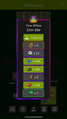 TLDR: fun game would recommend. Fun idle game, as of this review, no forced ads, which is amazing. There are a lot of skills to progress. Some of which is more of a grind because of needing resources for. My on wish for the developers to add is for when you unlock a recipe it shows you where to craft it and what it looks like. Many times I've gotten a crafting recipe as a drop and don't have the levels for it or just can't locate where it is after the unlock.