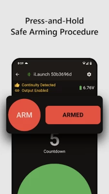 Take charge of your launches with simple and intuitive controls right on your device. Arm the launch, set the countdown, and ignite the engines with our simple "press-n-hold-to-launch" controls.