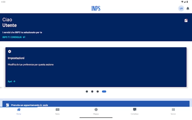 La vista principale consente di visualizzare le ultime notizie, accedere ai social dell’Istituto, salvare i servizi preferiti consentendo una navigazione diretta verso servizi specifici.