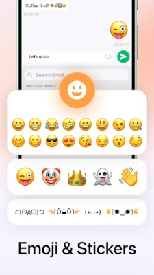 It doesn't have what it promises besides a few themes, it makes noise by default by pressing keys, which are unnecessarily big and most importantly, the emotes remain looking like the android ones and the amount of adds is way too much compared to others