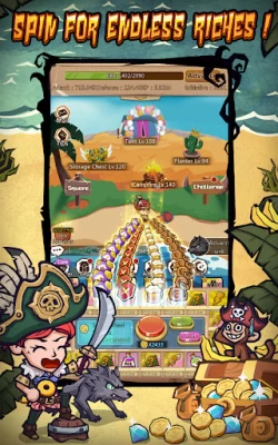 Day 2: Build a camp and hire bodyguards... While gathering resources, you discover an infinite spin wheel! Just a few taps and you're showered with gold and gear, turning the island into an unbeatable seaside resort in no time!