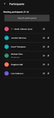 Great app and simple to use. However, some things to consider: currently, only moderators can chat with each other. Moderators should be able to send messages to participants and participants back to the moderators. It is sometimes hard to find someone who unmutes.