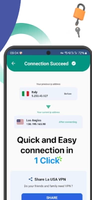 Fast And Unlimited And Speedy and Very Secure VPN,This VPN easily bypasses restrictions,This Vpn does not require any complicated setup and easily gives you unlimited internet access in any country you are in.Connects,This responsive and no-compromise Vpn easily connects you to high-speed USA servers in any country without restrictions,This looks like a regular Vpn on the outside,but in terms of speed and security,please made more versions of the (LA VPNs).