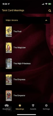 I downloaded this yesterday and i will say that it is a pretty good app for someone who is trying to revise the tarot meanings after a while . It tells you about the symbols that the traditional rider waite deck has used and also explains the meanings in a straightforward manner . You can also get daily readings which are free and this app doesn't has a tons of ads popping on the screen .