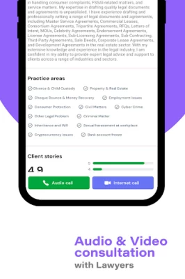 Great experience, I loved the interface and it was very easy to connect with a lawyer. I was able to choose the lawyer in my native language. The best is lawyer consultation is very affordable as compared to other app, pricing is transparent.