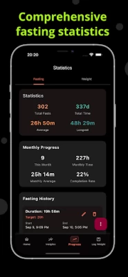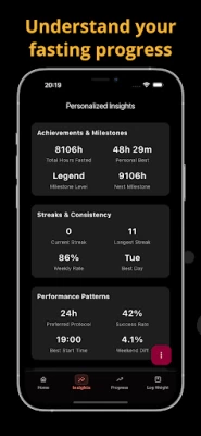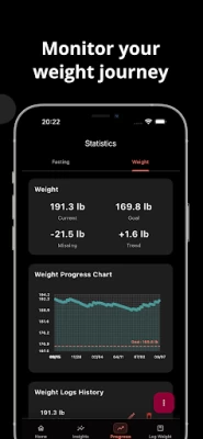 works well to track fasting times Anything else in the app seems very dysfunctional. the weight goal is all messed up and ive given up on it. The statistics page doesnt seem to work at all.