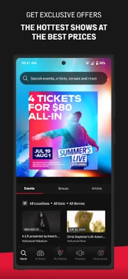 I love this app and what it offers for convenience. Recently, the app works opening it but when I search a artist the screen goes gray like the background and I can't access anything. No artists, artist info, tickets, concerts, or venues. Hopefully this gets fixed. I like the app.