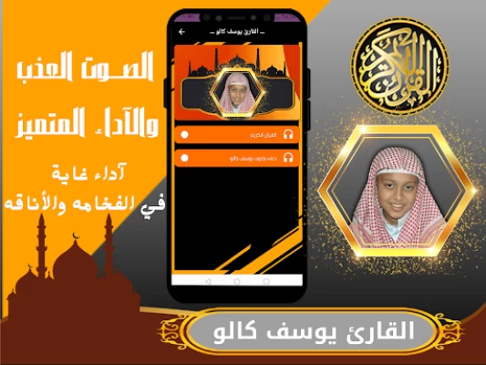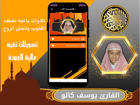 يتيح لكم تطبيق القارئ الصغير يوسف كالو سماع قران كريم بصوت يوسف كالو ويمكنك تنزيل القران الكريم إلى هاتفك المحمول بسهولة ويسر من خلال تطبيق واحد يضم قران الكريم بصوت يوسف كالو