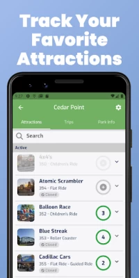 Love this app! Really great way to keep tabs on what you've ridden. I wish that more data was accessible, I'd like to see a list of the rides I've checked rather than just the number. Edit: the latest update is phenomenal, all the features I could have wanted have been added. Thank you so much, I can't wait to get out to the parks and use this!