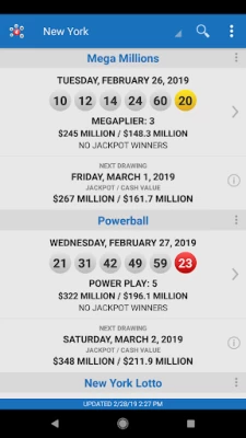 I've been using this app for years. It's very good, especially if you travel a lot. You can choose your states to follow. If the designers could put the upcoming draw on top (and maybe a different font) instead of visa versa. Also a little more color and/or a small gif to bring quick attention to the info might be a useful tool.