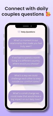 I really enjoy this app! Even after being married for years, it gives fun ideas for new conversations, new date plans, etc. My favorite parts are the Random Acts of Romance and the Daily Questions - they both just give simple and playful ways to add something sweet to your relationship every day.