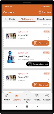 Clipped coupons stay for the time they're good. It's great to have that feature. I'd love to be able to click on things I add to the list in the app besides coupons