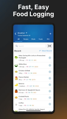 Started using today and so far it's awesome! The bar code data base is better than noom and fitness pal. I quickly scanned most of my fridge items. If it can't recognize a bar code it scans the nutrition label and pre enters the info!! Already started building recipes. Super easy and intuitive to use. I'll continue to update my review as I use it! I agree with another person's review that adding a workout tab would be highly valuable. Samsung/Apple watch or interfacing with Orange Theory.