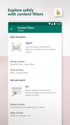 • Web filters for kid-friendly browsing on Microsoft Edge