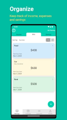 Great bill organizer, it does not require you to link bills & gives you a summary of your expenses versus income. I used to use Prism but unfortunately got shut down earlier this year and this has been the best replacement to Prism.