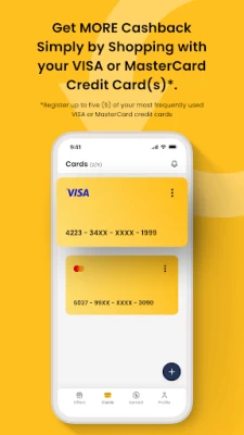 * Automatic cashback savings on up to five (5) VISA® or MasterCard® credit cards on one account