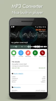 MP3 Converter has been really helpful in terms of reducing an audio file size and still maintaining it's quality, it's a wonderful app. But the only fault I had is editing the cover picture. It compresses the image and make it look abnormal. I would give it a 5 Star.