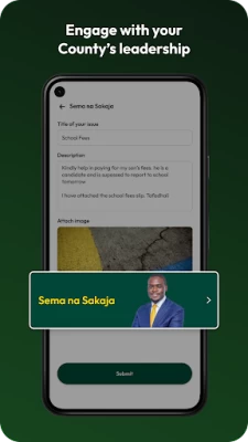 iv. Users Engage Governors: Users will also be able to engage their respective counties through the “Sema na Governor” feature, which simply means speak to the governors and gives a chatbot feature where users can engage their county leadership on various matters.