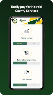 i. Standardized Experience: Through the MyNairobi app channel as a single point of entry, users will have access to their resident county features such as paying for county services including but not limited to parking, single business permits, land rates, and market cess fees among others.