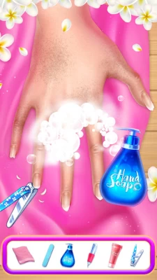 💅🏻 Manicure: Pamper your clients nail art salon makeover game, by tidying up their hands, choosing shapes, sparkling stones, rhinestones, stickers, colors nails polish for girls. Use your skills to manicure and pedicure games for kids! With the art designs app offline, you can explore various styles and trends, making each finger care a masterpiece.