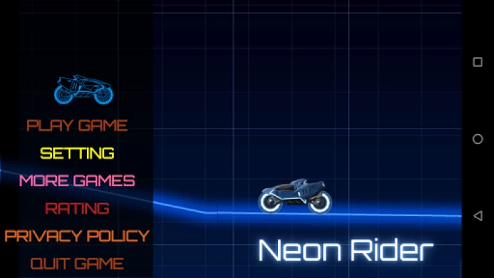 Misleading initial screenshot. Has nothing to do with the old flash game Neon Rider. Screenshot ripped straight from the old game and has nothing to do with the actual game.