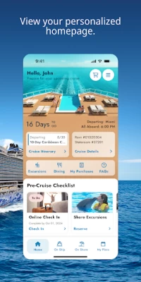 Questionable functionality - day before my cruise and the app says "There are no more for excursions available, enjoy the rest of your cruise". I'm not ON the cruise, and I can't see available excursions let alone book one. Also, if I lock my phone with the app open it bypasses my lock screen. With my luck my phone will bounce around in my pocket at the moment excursion booking starts working and book me on one I don't want to do. Have to keep the app for eDocs, since nobody uses paper anymore.