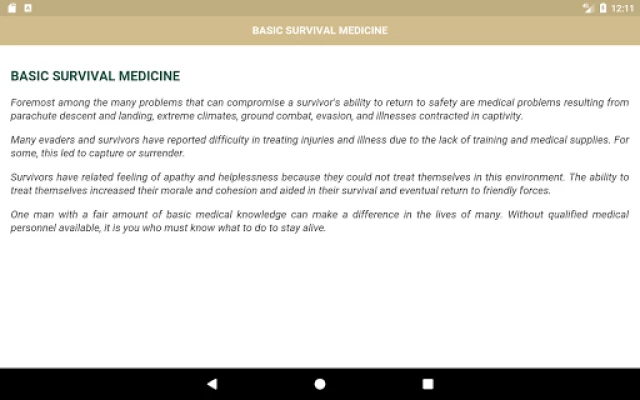 Very well app. Looks like most survival topics is covered and with images to illustrate. Just hopes it doesnt later get problem with images dissapearing like with another survival app.