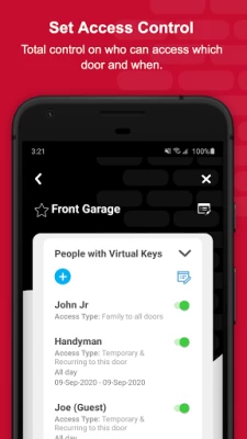 Very slow to start up. Adding someone for access doesn't work so they are in a never ending "pending" status which errors out when trying to delete them. Tried to add someone several times with no success. Refresh notice pops up everytime you move to a different area in the app which takes an unneccessary amount of time - example, "home" to "rules". Hopefully an update will come soon. Other than that, the app has potential and it works for simple open, close and notifications. Seems like the notifications are all or nothing. I don't need to know everytime the door is opened and closed but i need sound alert for my rules.