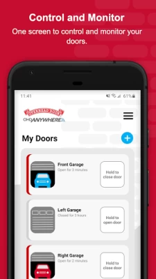 Works well most of the time, but occasionally log you out of the app which is a pain when trying to quickly open or close garage door. Also, you have to hold the button to open/close the door but if your finger slides at all (one handed operation), it thinks you are trying to swipe to delete the opener. Makes it rather annoying for responsiveness. If those two things were fixed, I would give it 5 stars.