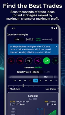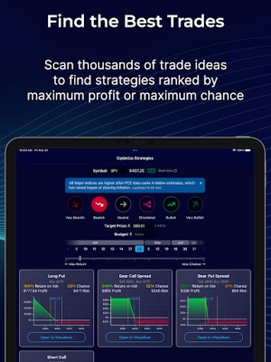 A very interesting dynamic app but with the limit of options nature.. Options value change very quickly and are influenced from many factors, this makes a strategy (included risk/reward) change very quickly and be outdated. I have observed many strategies with an initial optimal risk/reward ratio and certain breakeven levels, that then changed completely within 1 hour also during calm market conditions. Still a great app but be aware of the optimistic views that might change very quickly.