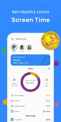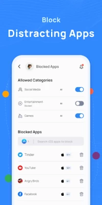 • Limit apps: Block or limit the time spent on social media, games, videos, and texting apps.