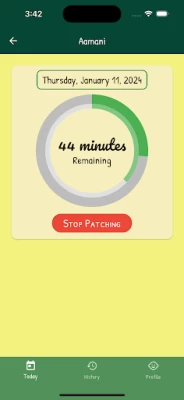 The app is good... It tracks date, day and time of patching.... I had a little problem... I had to patch alternate eye for my daughter.... I wasn't able to edit which eye i was patching on which day.... Just for record... It would have been better if you add a little note in editing.... And also.... An alarm when the time is up.... Will be the best