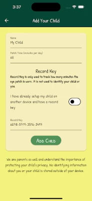 Update: 5 out 5 star! The Edit function has been fixed with the latest update, now it works perfectly to my needs. Thank you.......... Eye patching is really new to us, we really love this app. Being able to track how many minutes (hours) she has been wearing and it help hers to see a timer. I am giving 4 out 5 only because when you have to edit the time, it will only allow you to edit up to 300 minutes, when she has numbers in the 400s and 500s.