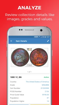 Been using to catalog some of my coin collection. Tailored to PCGS slabbed coins, but able to also add non pcgs. Option to add image from camera takes poor quality pic. Overall ap works ok but following improvements needed for top rating. 1) Addituonal privacy assurances 2) Auto-generate catalog serial number for non-PCGS inventory. 3) Ability to search for text in personal notes. 4) Image recognition ( i.e. Google lens) for Coinfacts seach and Non-PCGS inventory additions