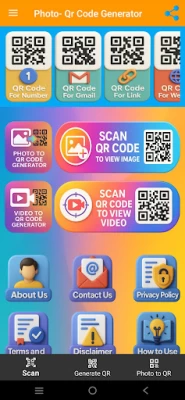 📲 Quick access to Scan, Generate QR, and Photo to QR features.