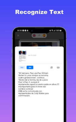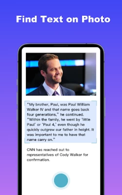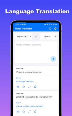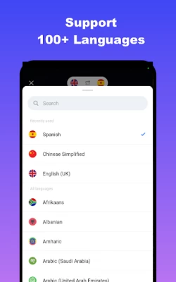 Gave it picture with text App found no text and translated nothing Search bar for languages also doesn't work so you have to scroll through and find the one you want