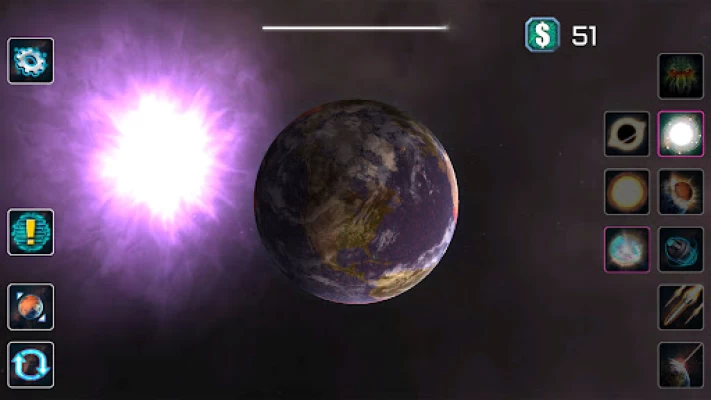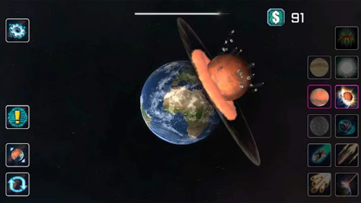 The game has a very big potential to become a popular game like solar smash. I literally love the collision effect, but the outcome is very unrealistic. For example when Earths collide with Mars both planets have to be destroyed if the collision is frontal.If the collision is upper or lower it should destroy a part of earth, but the earth should be red because of the big planets collision.Make the planet size real like when I selecte Jupiter and collide it with Venus.Venus should be much smaller