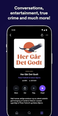 Podimo service seems fine, but the app just annoys me to bits, I find the interface unintuative and some notification bubbles won't disappear for unclear reasons. The interface for Android auto has been stuck for me, not updating the podcasts I follow nor updating the episodes for the podcasts I can see. (Seems like it's been this way since week 45, 2023) Overall I just use this app because some of the podcasts I like to listen to are only available through Podimo, otherwise I would switch...