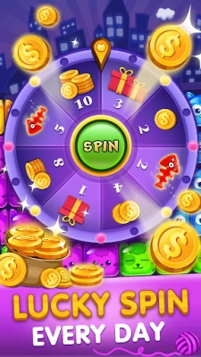 Don't like it. If you lose a level you have to start back at level 1. The levels get harder and impossible to get the number of points needed to progress to the next level. You have to spend coins to replay the level. Can't get pass level 2, no matter what. The cats seems to fall where there is no way to get a good combination of cats to get maximum points. The game is set up so that you have to spend coins which you do not have a lot of. Don't see a spinning wheel. Deleting this game.