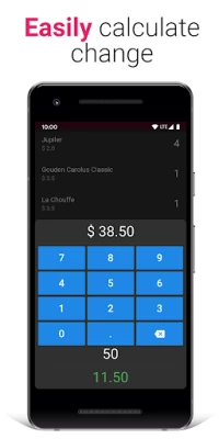 Once you are completely set-up, you can begin taking orders. This can be done by either tapping on a button to add a product to the order (and long pressing to remove if you made a mistake), or, if preferred, you can scan the barcode of the product.
