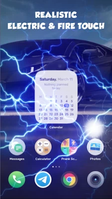 Open the app and start playing this fire and electric screen feature. Then pass this phone to your mom, your dad or your daughter, your friend. Once they touch the screen, electric rays will happen. And see how much shock they will get! LOL