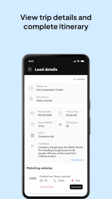 - View trip details like pickup & drop-off location/time, passenger count, itinerary and more