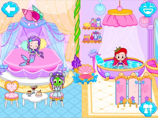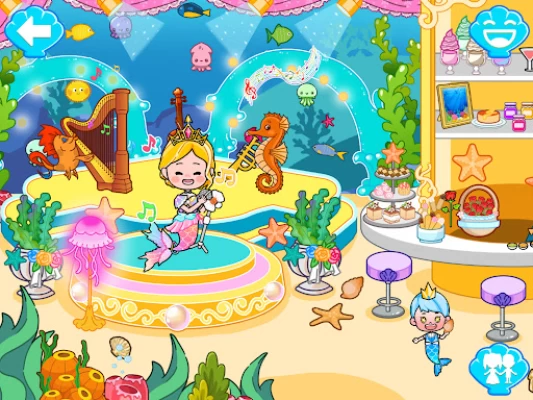 Let's start an exciting journey into the wonders of Princess Life Town! Discover the secrets of Bobo Mermaid Town Simulator and meet new friends like the mermaid princess, bobo jellyfish pet, mermaid queen, koi fish doll princess, and even a cat or a pony. Dive into this magical realm and choose from a stunning array of outfits.